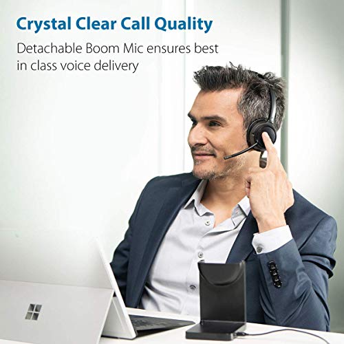 [SOLID, COMFORTABLE & CONVENIENT] Onze headset is ontworpen met uw comfort in gedachten en heeft ultralichte, superzachte oorkussens van proteïne leer en een verstelbare hoofdband voor een hele dag draagcomfort. Ideaal voor lange conferentiegesprekken. Ons product bevat zelfs een handige desktopstandaard voor eenvoudig opladen en opslag.