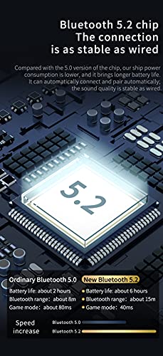 Bluetooth 5.2 Chip & Charging Case: In vergelijking met de 5.0-versie van de chip is ons stroomverbruik lager en brengt het een langere levensduur van de batterij. Het kan automatisch verbinding maken en automatisch koppelen; de geluidskwaliteit is stabiel als bekabeld. De Bluetooth-oorhaak kan ongeveer 6 uur in een volledig opgeladen toestand worden gebruikt en de oplaadcase kan 8-10 keer meegaan.