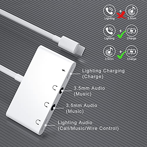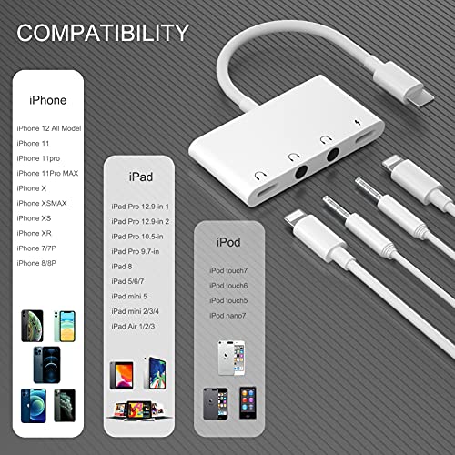 Multifunctioneel apparaat: de i-telefoon/i-pad naar hoofdtelefoon-adapter ondersteunt het opladen en luisteren naar muziek of telefoneren. Headset-in-line bediening, kan via Lighting-kabel worden opgeladen of naar muziek luisteren. Met de 2,4 A snellaadfunctie wordt de laadsnelheid met 1,5 keer verhoogd. Maak je geen zorgen dat je i-telefoon of i-pad bij het genieten van muziek of films geen stroom meer heeft.