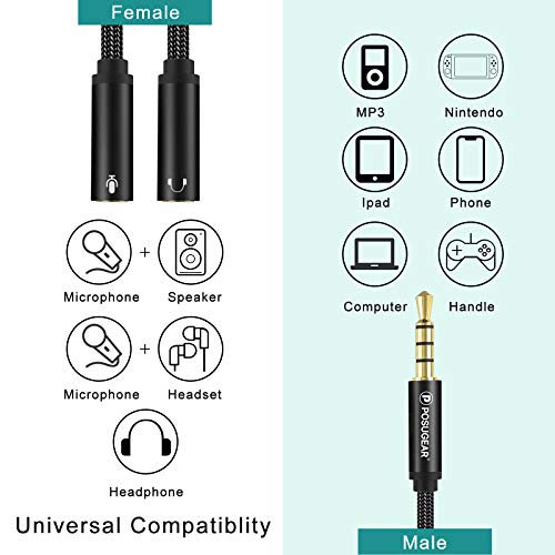 Specification: POSUGEAR Hoofdtelefoon Mic Splitters Adapter, 3,5 mm Mannelijk tot 2 Dual 3,5 mm Vrouwelijke Audio Mic Y Splitter…