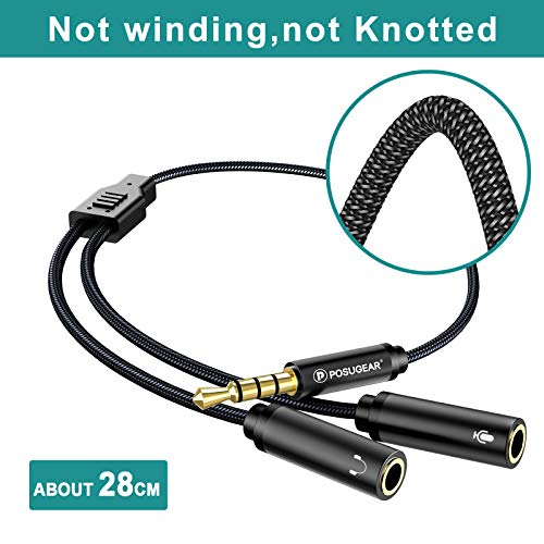 POSUGEAR Hoofdtelefoon Mic Splitters Adapter, 3,5 mm Mannelijk tot 2 Dual 3,5 mm Vrouwelijke Audio Mic Y Splitter…