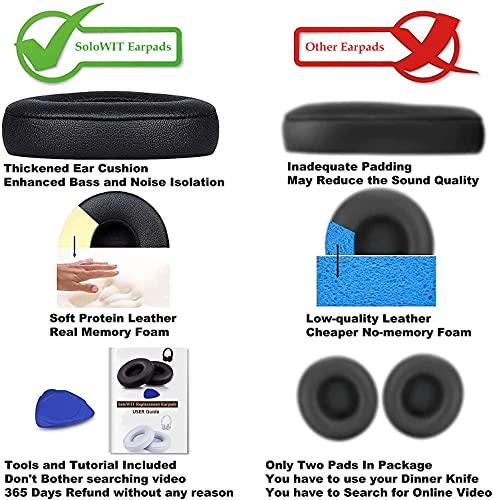SoloWIT® Oorkussens Vervanging voor Beats Solo 2 & Solo 3 Wireless Draadloze On-ear Koptelefoon met Zacht Eiwit Leer…