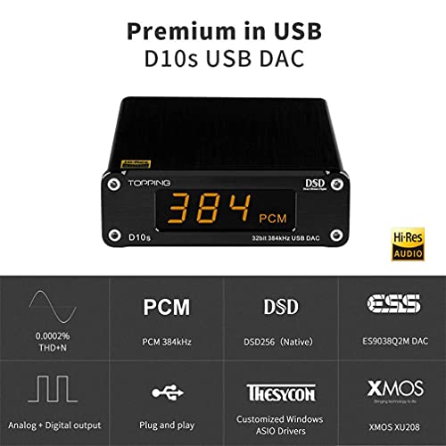 Specification: TOPPING D10s DAC Mini USB DAC XMOS XU208 ES9038Q2M DSD256 PCM 384 kHz audio desktop audio decoder (zwart)