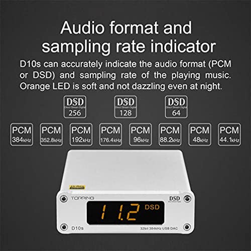 D10’s kunnen nauwkeurig het audioformaat (PCM of DSD) en de samplesnelheid van de afspeelmuziek aangeven. Oranje LED is zacht en oogverblindt ook ’s nachts niet.