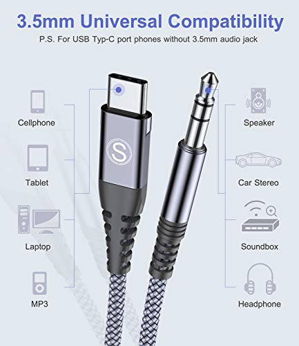 ✅【Aux-kabel met voldoende lengte van 1,2 meter】: dankzij de USB C Aux-kabel met lengte van 1,2 m kun je je mobiele telefoon vrij verplaatsen. De gevlochten nylon ommanteling geeft de kabel de nodige stabiliteit en voorkomt onbedoeld verward en knopen van de Aux naar USB C-kabel.
