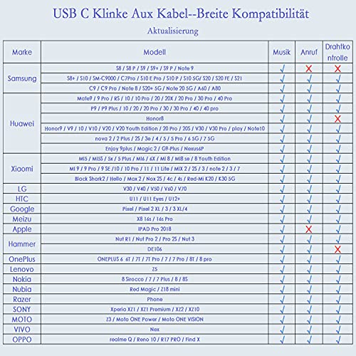 Specification: USB C-jack aux-kabel auto mobiele telefoon 1,2 m, USB C naar 3,5 mm jack kabel voor Huawei P30 Pro/P40 Pro/P20/Mate 30…